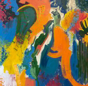 Just for the pure joy of using lots of color this piece came about - and a deep satisfaction settled in. It is the largest painting I have worked on since university and made me realize once more how much I enjoy to fill a big canvas. (Now I want to go even bigger!)