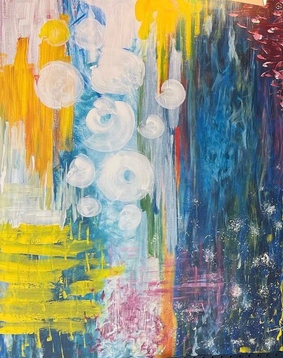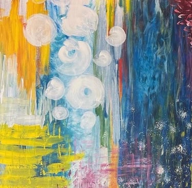 Since I grew up on the Baltic Sea and have lived most of my life near the ocean, I get emotional and maybe even a little homesick when I stand on a beach or shore, no matter what part of the world. We went on vacation to Myrtle Beach, South Carolina when I had this realization that the ocean connects me deeply with my roots, holding a treasure of memories. Back home, I painted the ocean but couldn’t stop there, applying more layers of paint until the ocean was covered - I think that is what happens with what we see and experience: it is coated by layers of memories.